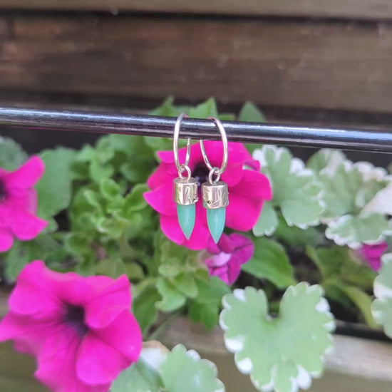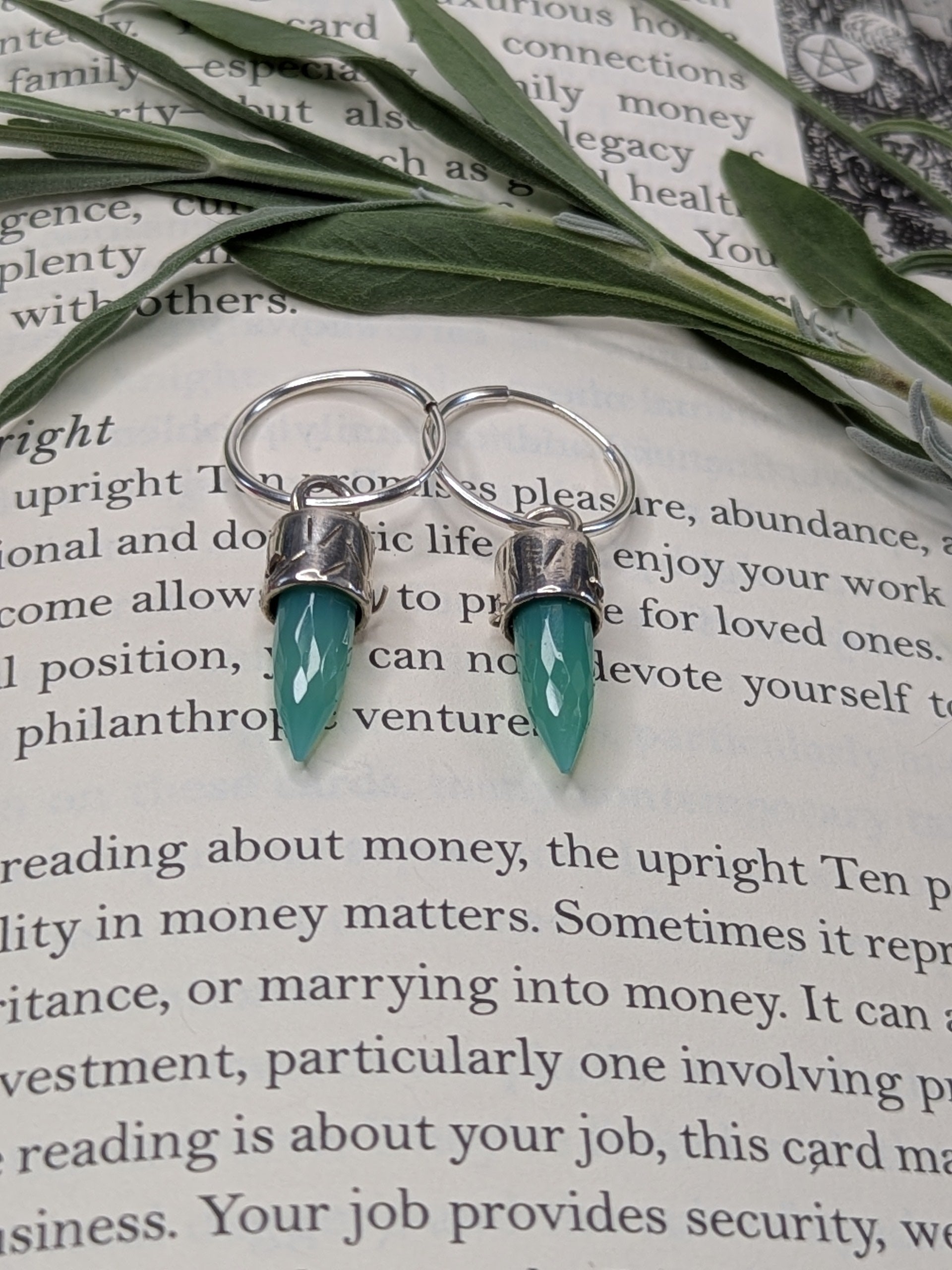 Chrysoprase Bullet Crystal Earrings — Sterling Silver Hoops for Heart-Centered Strength