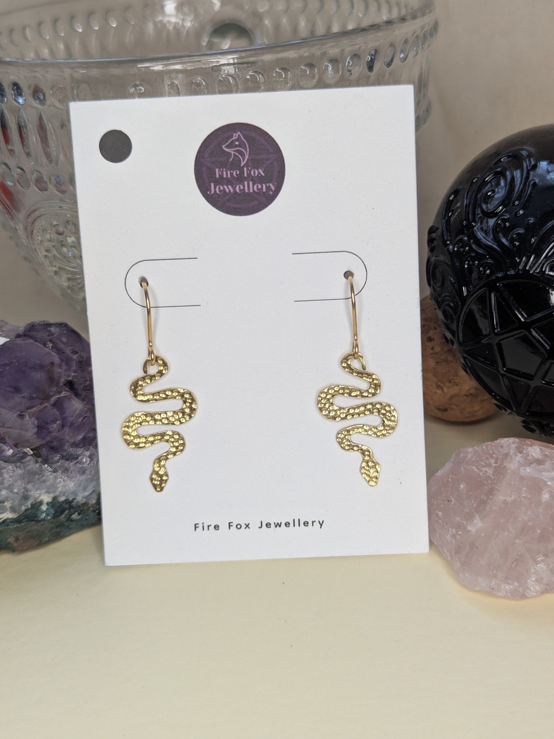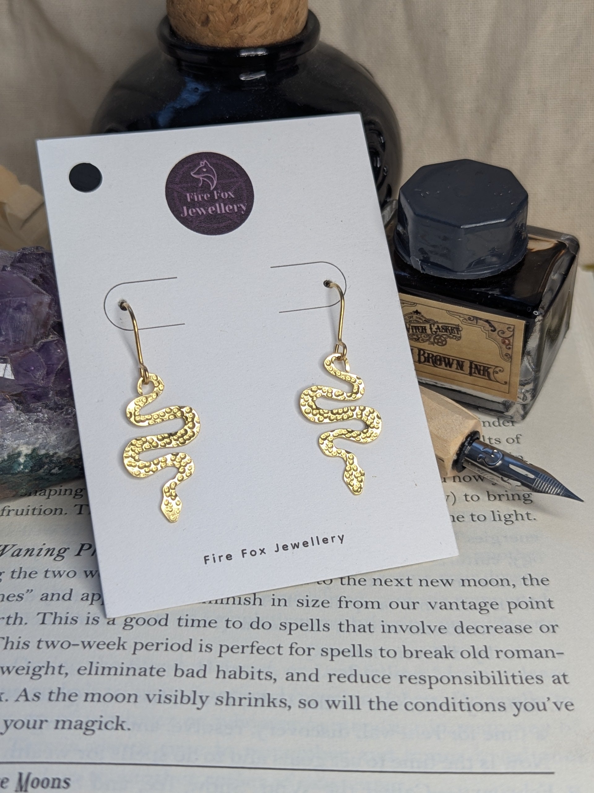 Hammered Brass Snake Earrings: Gothic Boho Serpent Jewellery