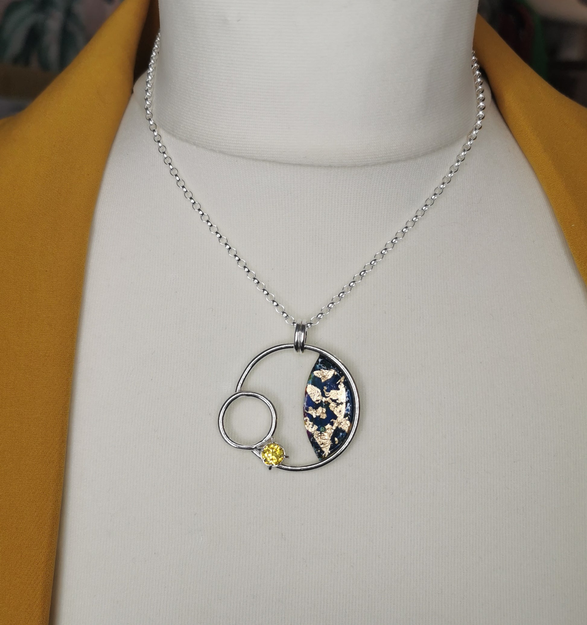 Silver necklace with yellow cubic zirconia